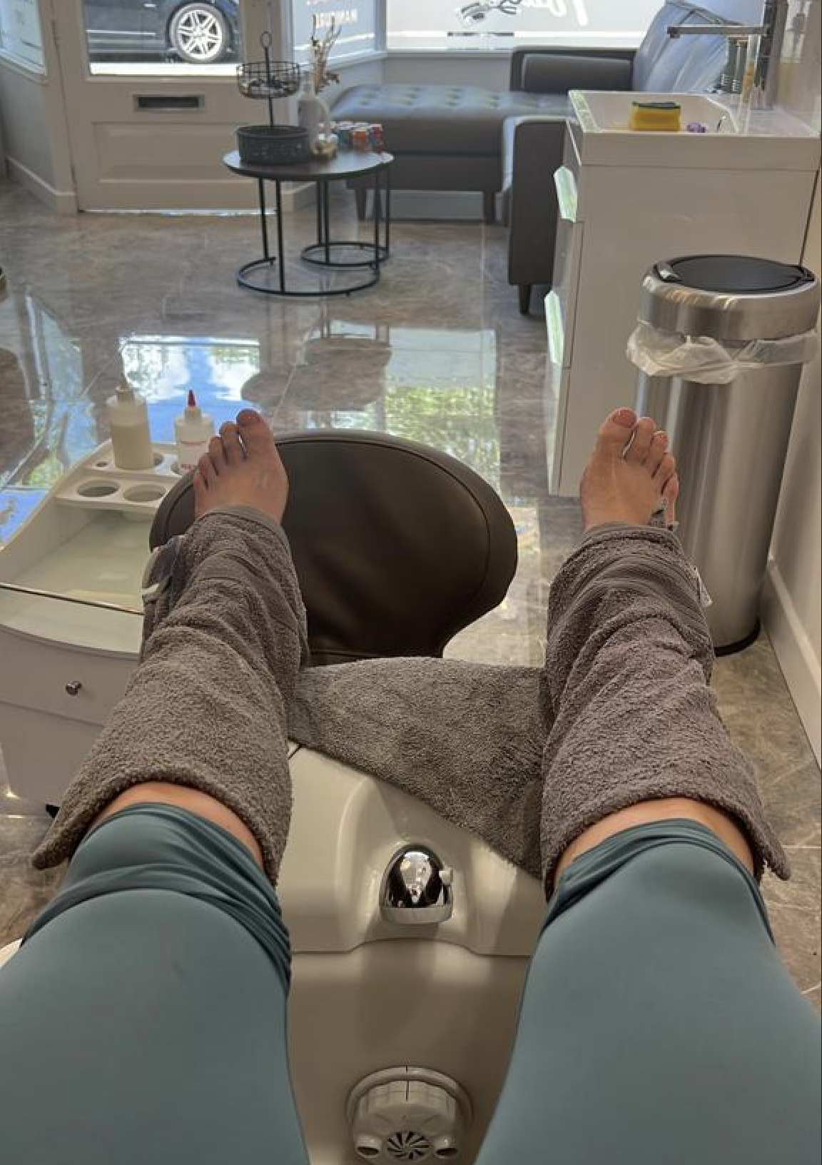 I messaged the gym first thing to let them know I wouldn’t be able to make the morning class because of the contractions. I decided to just carry on with my plans for the day, but I felt like going to a weightlifting class at F45, probably wasn’t the wisest idea. I met up with my friend, Ali for a dog walk around the racecourse mid-morning, who was in as much disbelief as me that I might be in early labour. Contractions had become less frequent whilst walking but seemed to return on the drive home. I went to lunch with another friend, before going to a nail appointment with my mum at 2pm. It was whilst I was at the nail salon that the contractions became more frequent and slightly more intense. I started practicing my breathing, as it had become strong enough to make me wince. I also thought it might be the right time to text my Doula with a heads up, as she was coming from Cirencester.