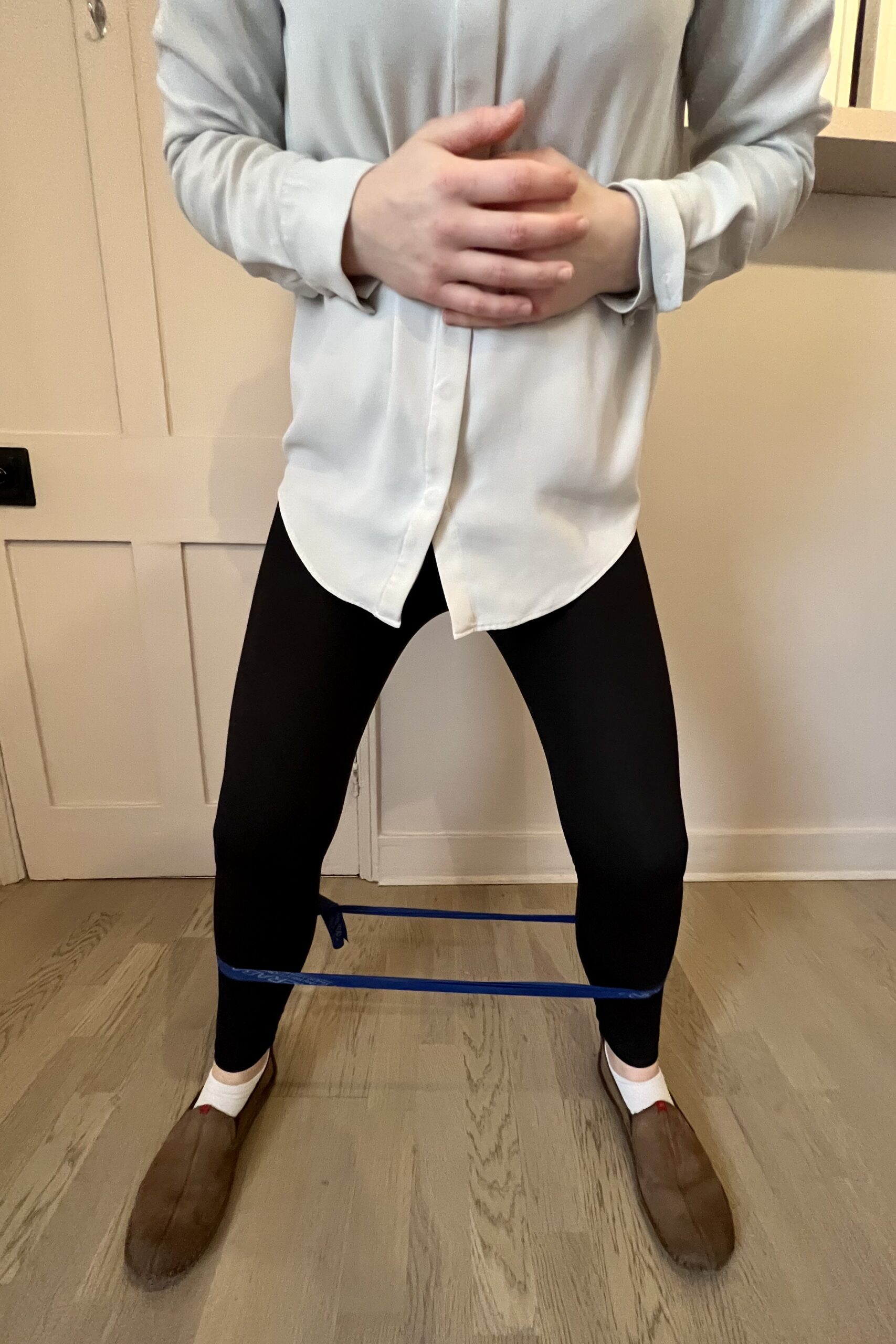 Wrap a band around the lower part of your legs, above your ankles. Step to one side and repeat as required. Repeat 8 times on each side.