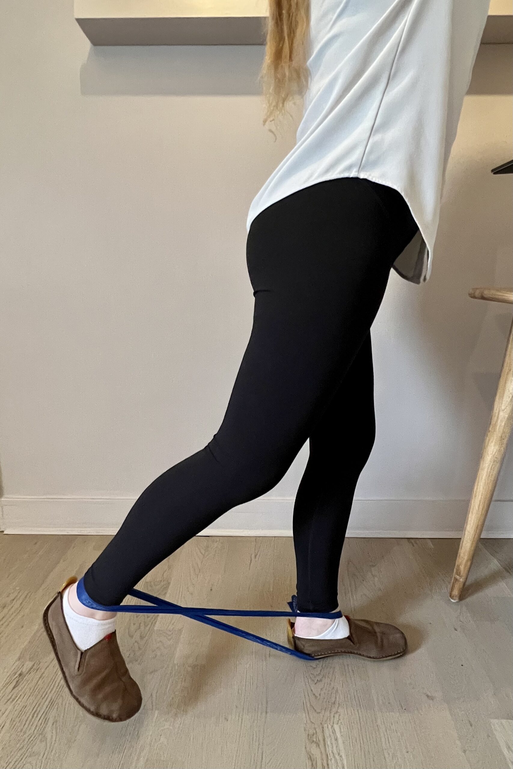 With an exercise band secured around your ankle, and the other end anchored to a fixed object in front of you, move the leg backwards to create resistance in the band. This exercise strengthens your gluteal (buttock) muscles, but also improves stability and balance of the opposite leg. Repeat 8 times on each leg.