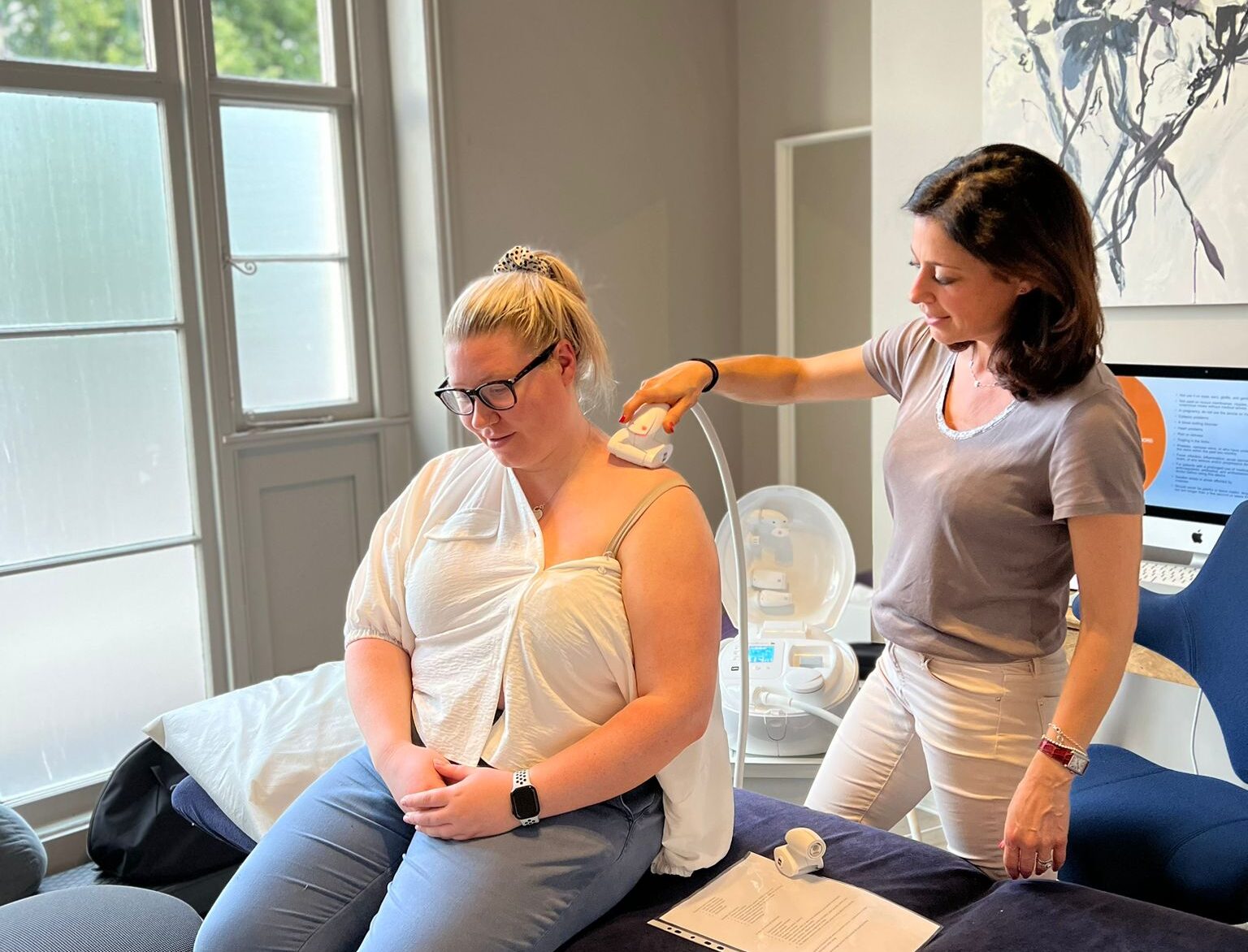 It is an FDA approved method of high intensive connective tissue/ lipomassage and as such is also used in the beauty industry to stimulate the skin and its underlying cells. This brings about multiple benefits such as reduced cellulite, smoother skin tone, reduced waste products in the muscles. This all contributes to toning the connective tissue and breaking down fat deposits. It can be used to create a healthy skin tone and texture, ensures greater hydration and plumpness making the skin firmer and reducing wrinkles. We are not using it for these purposes in clinic though!