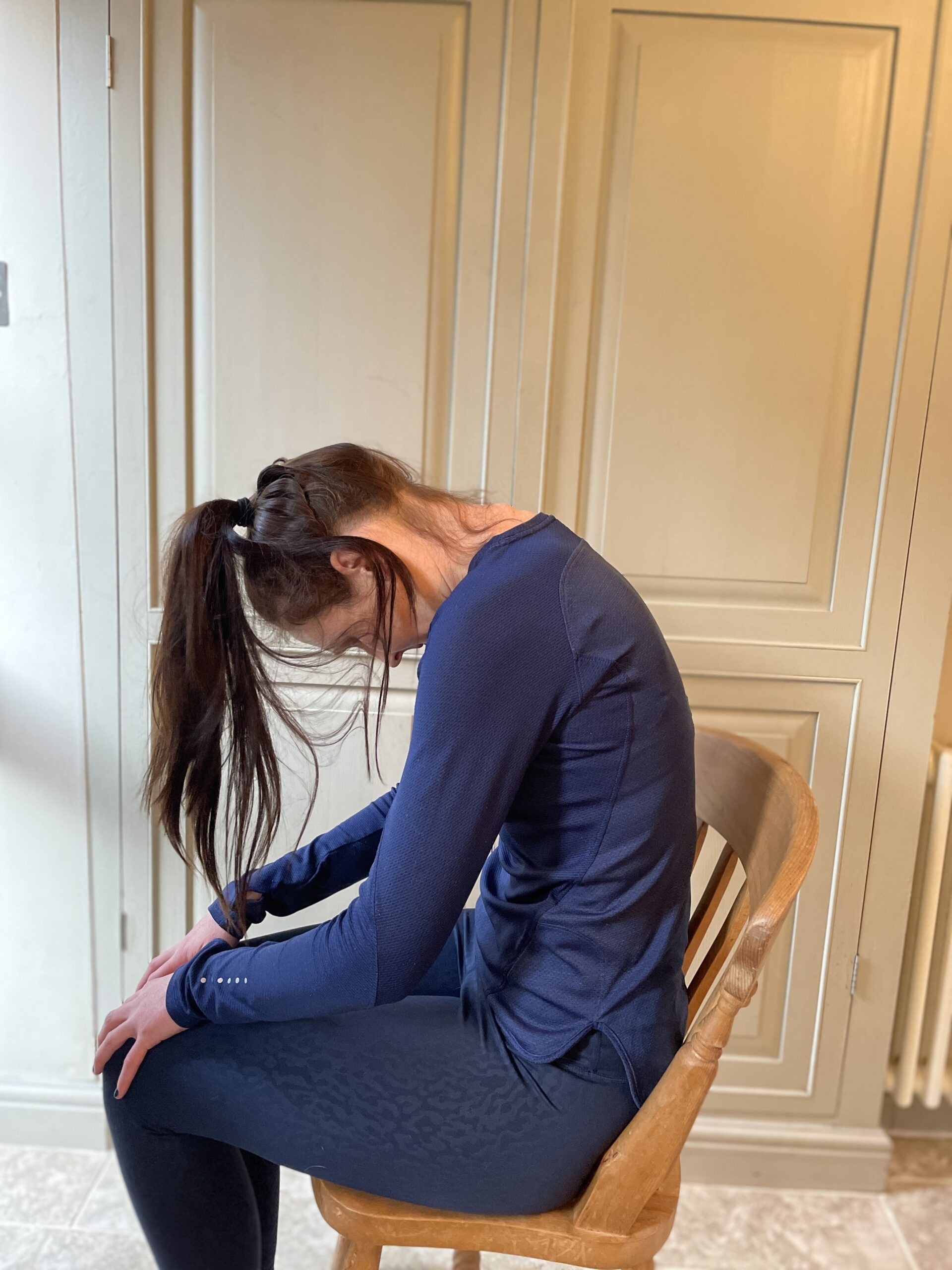 - Sit your bottom right to the back of the chair to make sure your head and shoulders are sat above your hips.